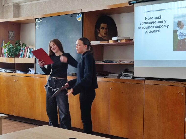 18 лютого викладачки німецької мови Мар’яна Плоскіна та Наталія Загребельна провели позаурочний захід на тему «Німецька спадщина на Закарпатті». Студенти дізналися про мовні запозичення, які й сьогодні побутують у нашому регіоні, та усвідомили роль німецької культури на формування мовного та культурного середовища краю.