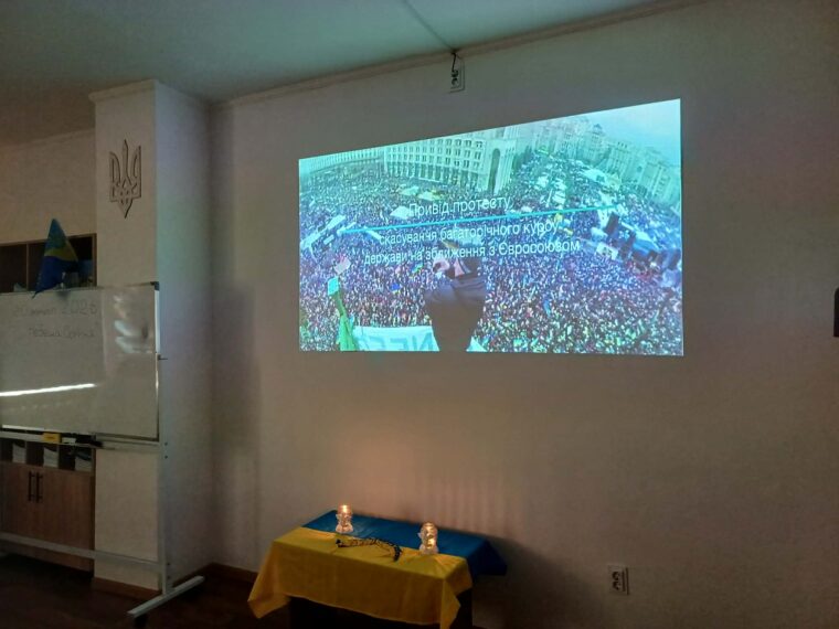 Під час заходу зачитували вірші, натхненні подіями Революції Гідності. Викладачі історії Вікторія Янчишин та Роман Калинич нагадали про хронологію подій тих днів і обговорили вплив героїчного подвигу Небесної Сотні на сучасну Україну. Вони підкреслили, що їхня жертва стала основою для сьогоднішнього спротиву українського народу, а нинішні захисники продовжують справу тих, хто першим піднявся на боротьбу за свободу. Присутні вшанували пам’ять загиблих хвилиною мовчання.