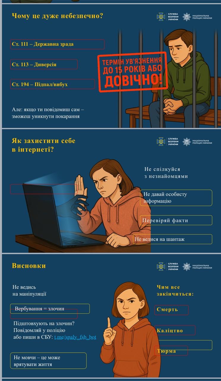 У рамках інформаційної кампанії Служби безпеки України та Національної поліції щодо протидії вербуванню підлітків спецслужбами рф, керівники навчальних груп обговорили методи та форми донесення інформації до студентської молоді у ході годин спілкування, індивідуальних бесід, превентивних консультацій. Підвищити рівень обізнаності про безпечну, усвідомлену та відповідальну поведінку у соціальних мережах, маркери загрози та алгоритм реагування на спроби ворожих маніпуляцій – спільне завдання працівників Служби безпеки України, Національної поліції, педагогів, батьків.