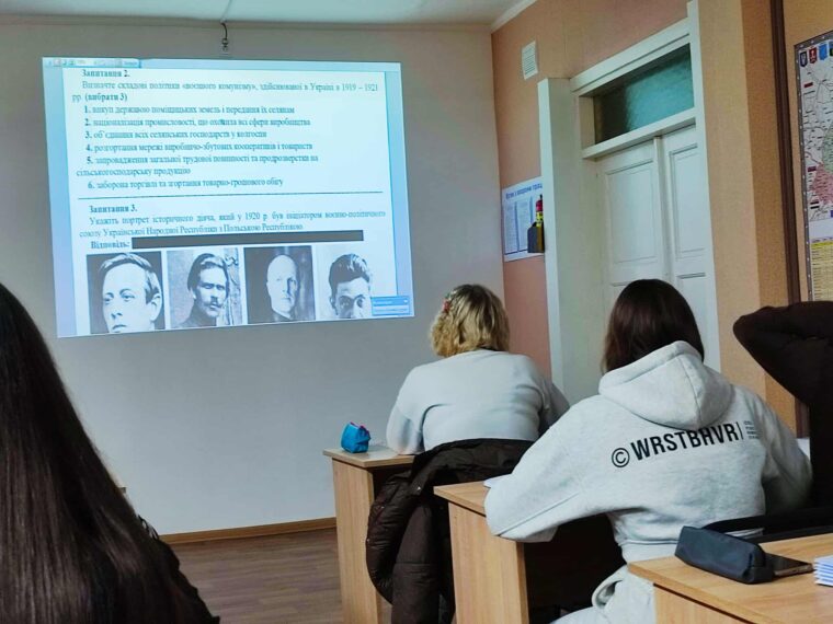Педагог обрав форми, що зробили урок особливим: документальний фільм, під час перегляду якого студенти занурилися в атмосферу епохи, побачили живі факти, а не просто дати зі сторінок підручника; інтерактивні завдання, що допомогли молоді «прокачати» аналітичне мислення та закріпити нові знання, рефлексія-руханка – коротка динамічна пауза, яка сприяла емоційному завершенню уроку.