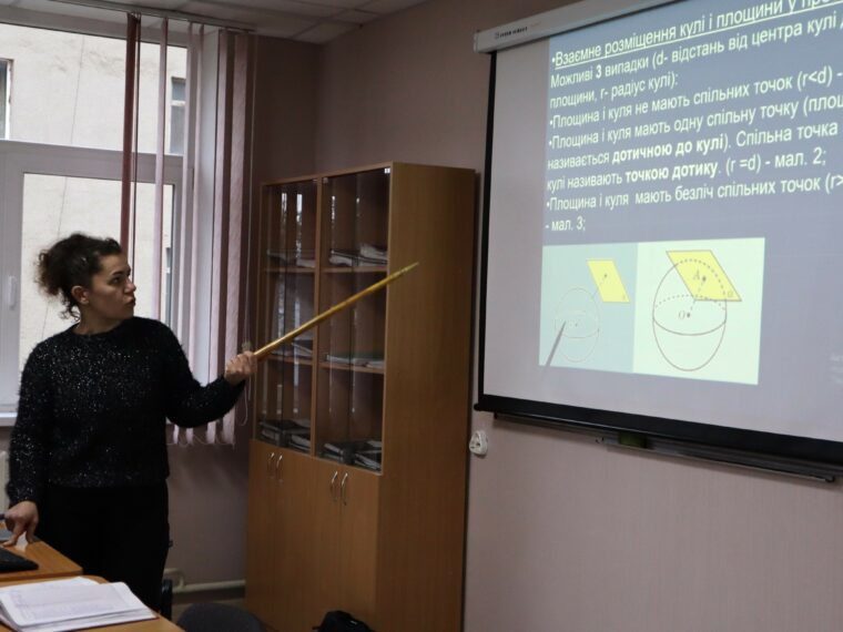 04 лютого викладачка математики Ольга Ляшенко провела відкритий урок на тему «Куля і сфера. Перерізи кулі площиною», у ході якого студенти занурилися у просторову геометрію та побачили практичне застосування теоретичних знань.