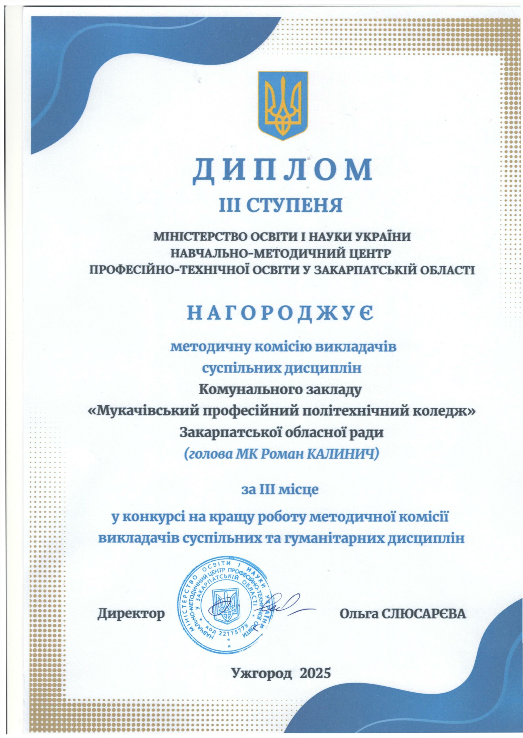Королович Іван Іванович - Інженер з охорони праці Викладач спецдисциплін за суміщенням