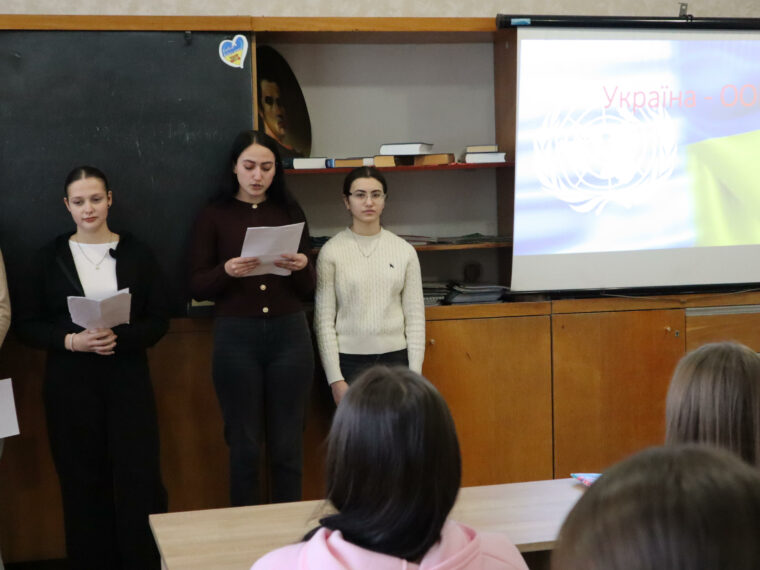 4 лютого в коледжі в рамках тижня суспільних дисциплін відбувся позаурочний захід, присвячений темі «Україна в системі міжнародних відносин». Викладачка історії Вікторія Янчишин окреслила роль України як суб’єкта міжнародного права, її участь в організаціях ООН, ОБСЄ, Раді Європи, а також прагнення до інтеграції з євроатлантичним співтовариством.