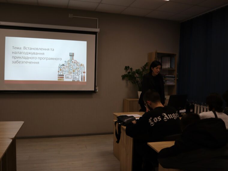 11 лютого майстер виробничого навчання Наталя Чепіжак провела відкритий урок на тему «Встановлення та налагоджування прикладного програмного забезпечення». Студенти закріпили знання про програмне забезпечення та ієрархію інформаційних систем, ознайомилися з різними видами прикладного програмного забезпечення – від офісних пакетів до спеціалізованих програм. Акцентували увагу на питанні ліцензування, вчилися розрізняти комерційні, пробні, вільного використання та open-source рішення, що є важливим для дотримання авторських прав і кібербезпеки. У ході практичної частини опановували алгоритмам інсталяції та конфігурування програм.