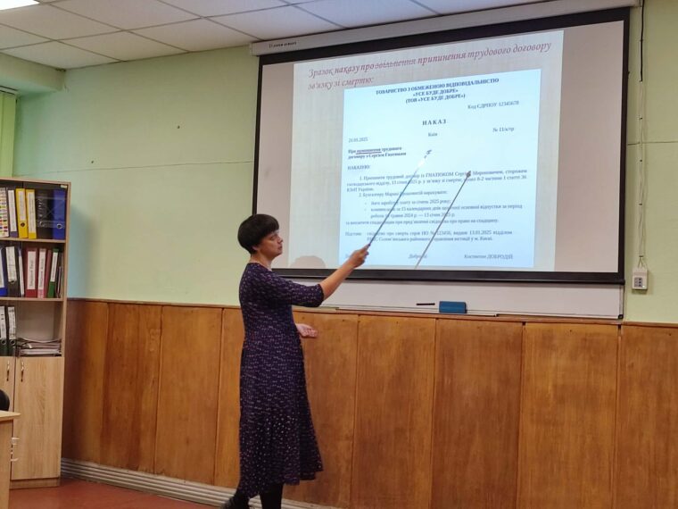 13 лютого викладач спеціальних дисциплін Ольга Рижкова провела відкритий урок з предмета Діловодство на тему «Документальне оформлення звільнення з роботи. Складання наказів про звільнення з роботи».