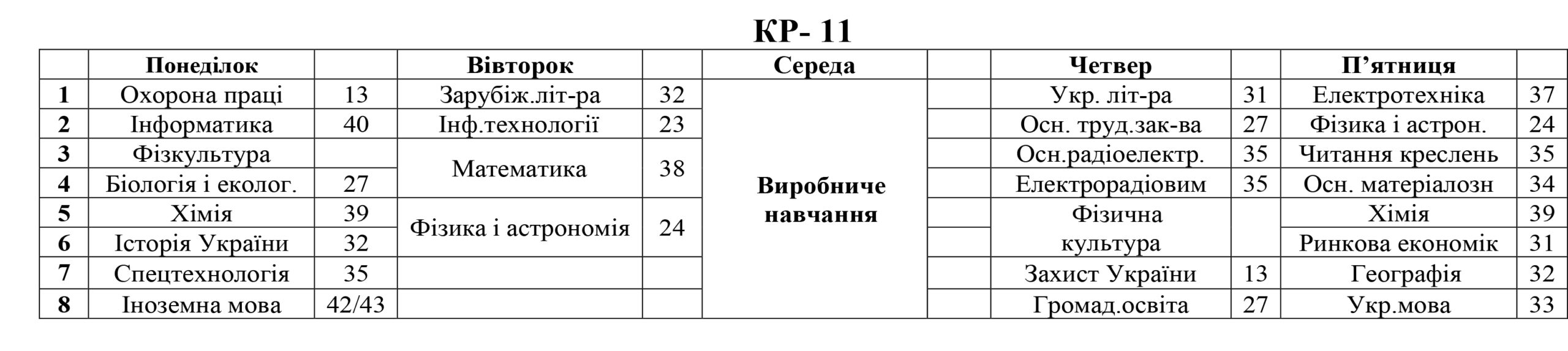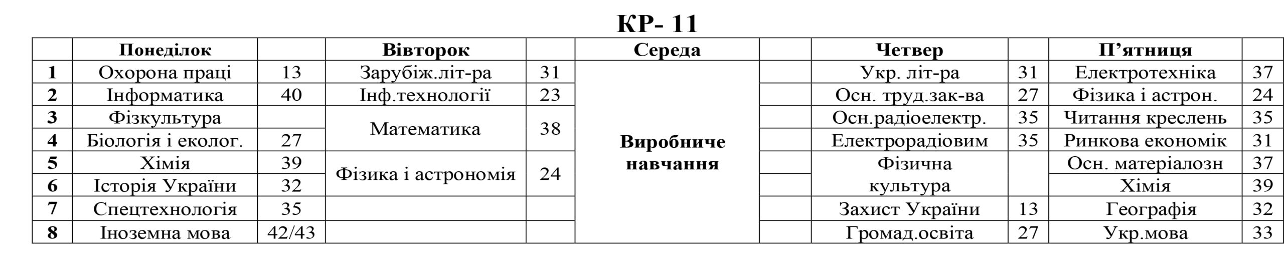РОЗКЛАД ЗАНЯТЬ