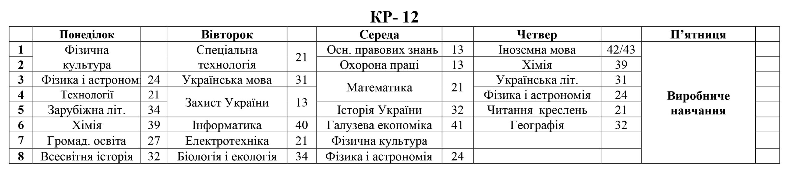 РОЗКЛАД ЗАНЯТЬ