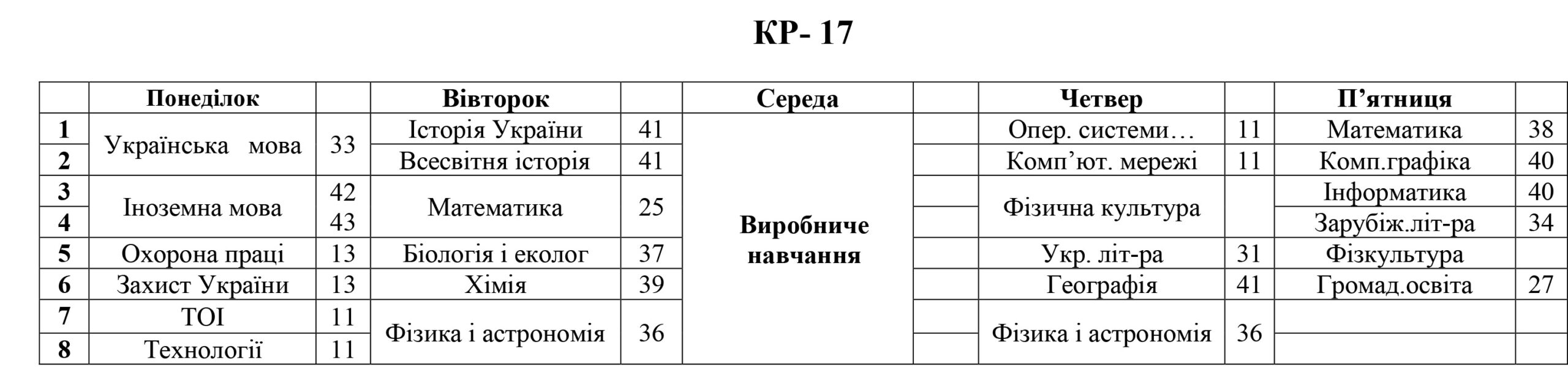 РОЗКЛАД ЗАНЯТЬ