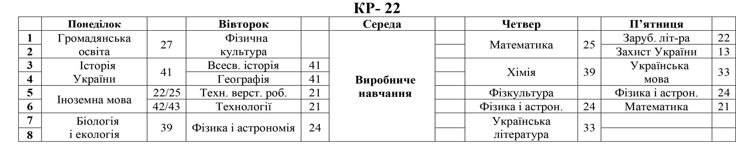 РОЗКЛАД ЗАНЯТЬ
