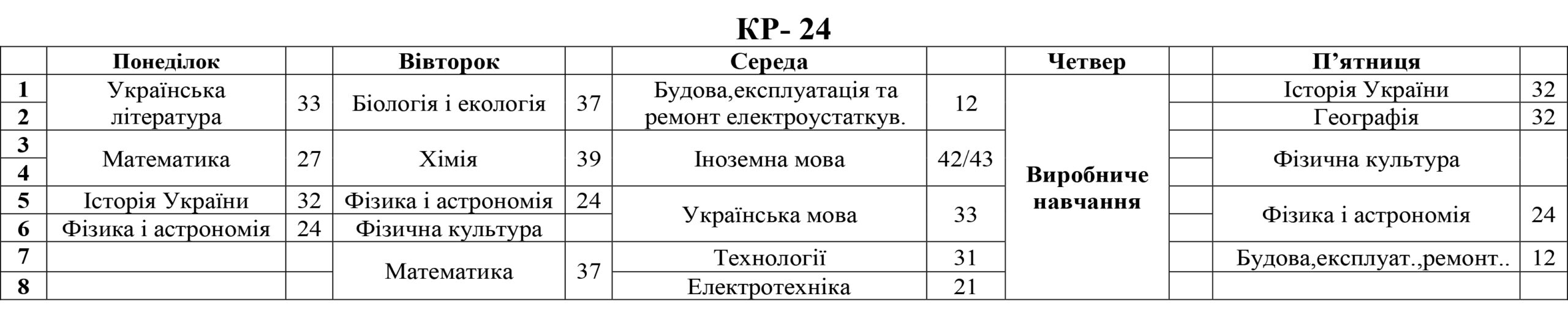 РОЗКЛАД ЗАНЯТЬ