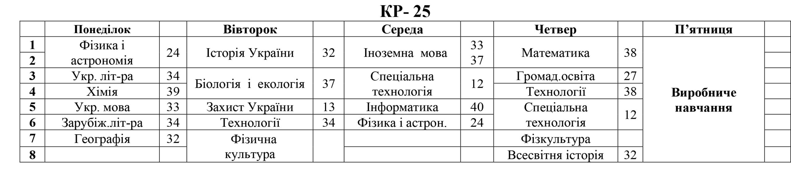 РОЗКЛАД ЗАНЯТЬ