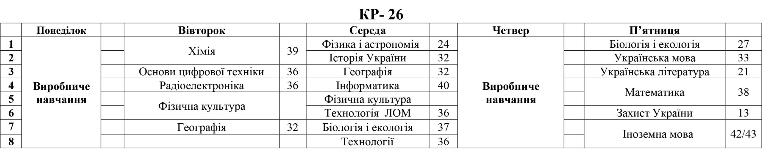 РОЗКЛАД ЗАНЯТЬ