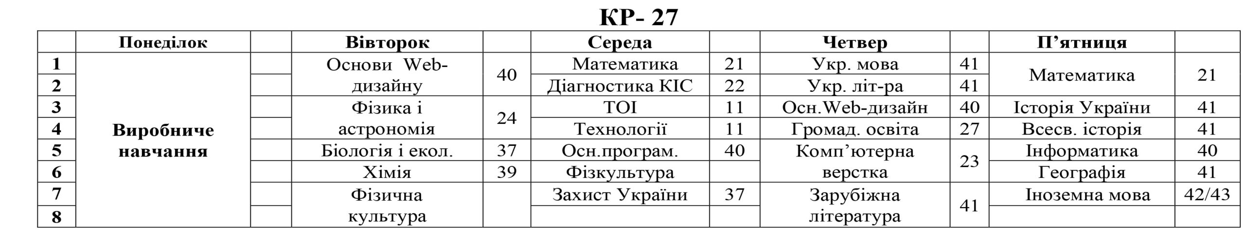 РОЗКЛАД ЗАНЯТЬ