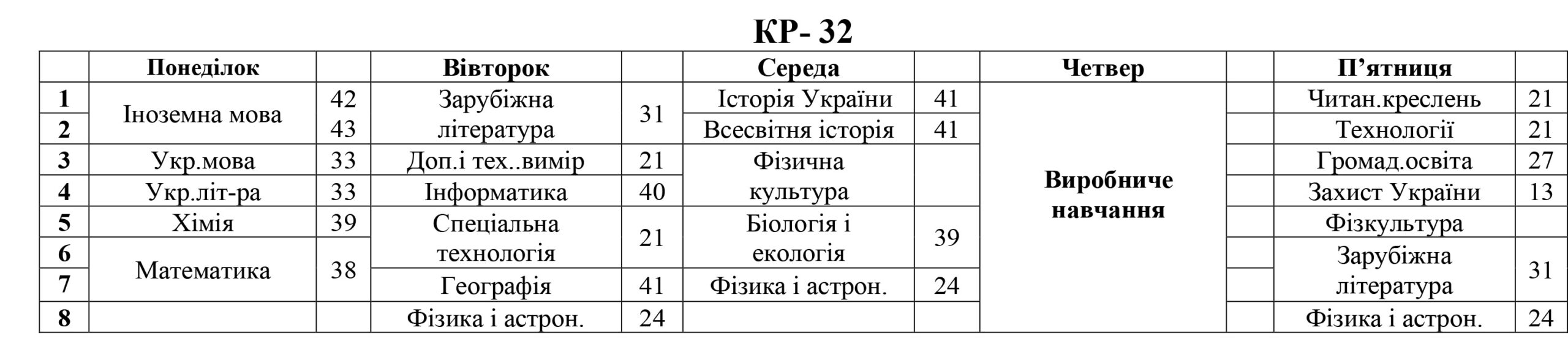 РОЗКЛАД ЗАНЯТЬ