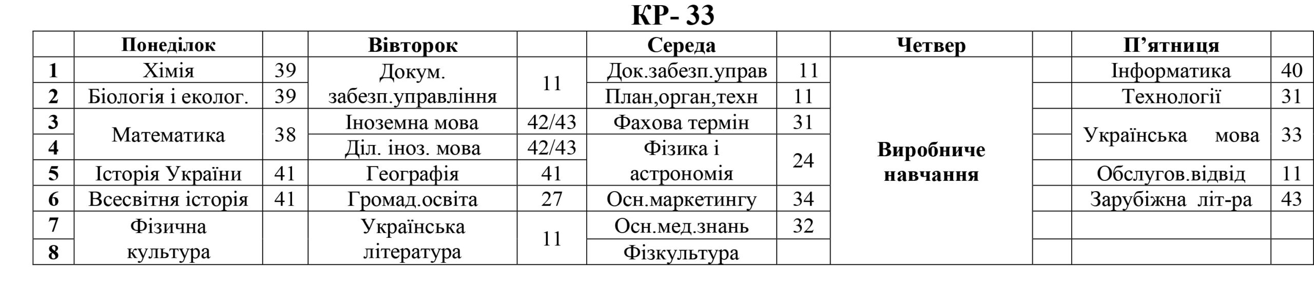 РОЗКЛАД ЗАНЯТЬ