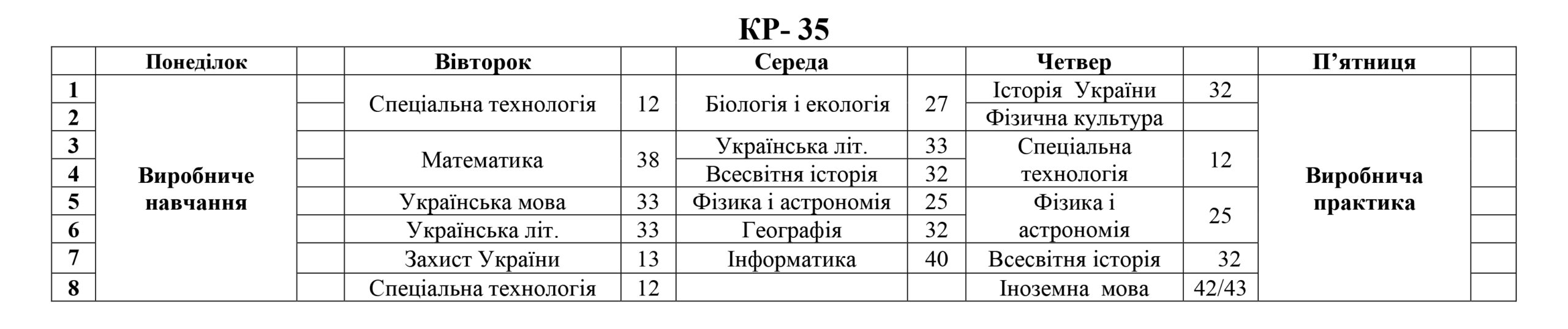 РОЗКЛАД ЗАНЯТЬ