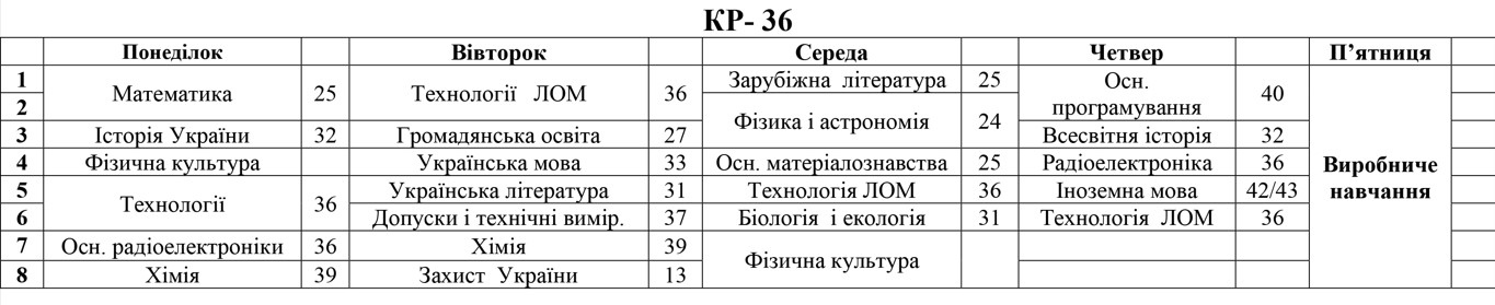 РОЗКЛАД ЗАНЯТЬ