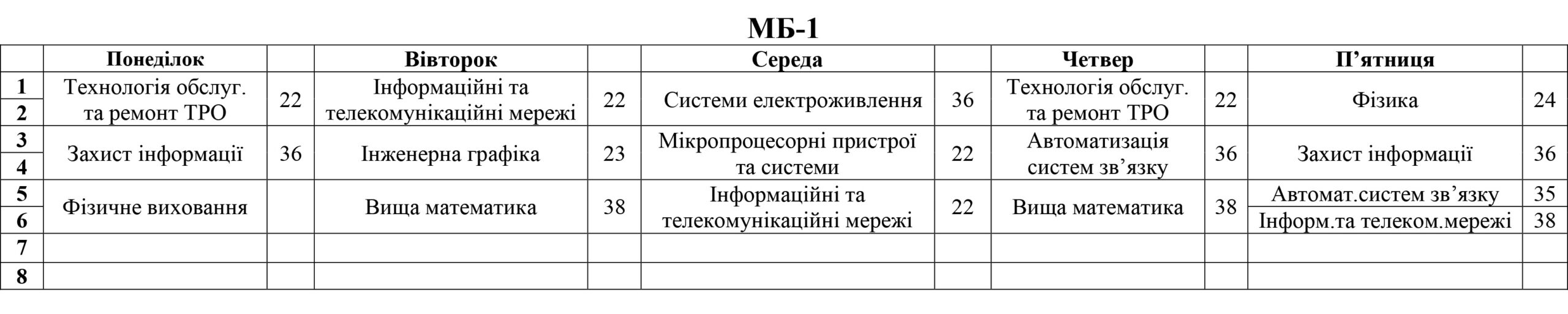 РОЗКЛАД ЗАНЯТЬ