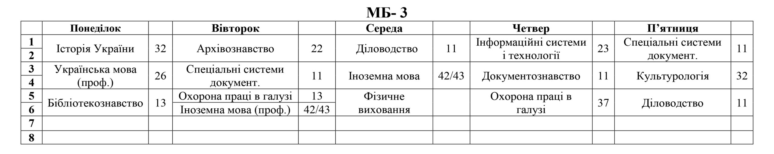 РОЗКЛАД ЗАНЯТЬ