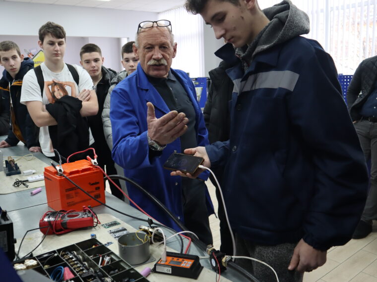 Учасники гуртка традиційних та альтернативних джерел енергії під керівництвом Василя Тіби працюють над інноваційними рішеннями у сфері відновлюваної енергетики. Сьогодні студенти виготовили та випробували експериментальну гідроустановку для вироблення й накопичення електроенергії з номінальними характеристиками 12 В та 0,28 А. Пристрій дозволяє ефективно використовувати енергію водяного потоку в системі опалення, перетворюючи її за допомогою міні-генератора на електричну енергію. Вироблена електроенергія через систему міні-контролерів накопичується в акумуляторних батареях, а згодом може живити побутові пристрої – заряджати мобільні телефони, планшети та інші гаджети. Проєкт демонструє принципи циркулярної економіки – ефективне використання вторинних енергоресурсів.